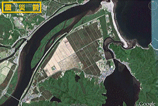 ↓下の画像は比較のため震災前と震災後の大川地区の様子を Google から拝借してきました。