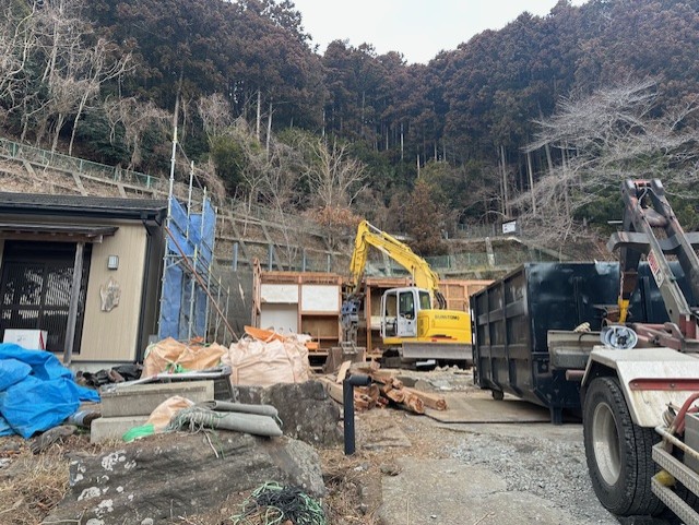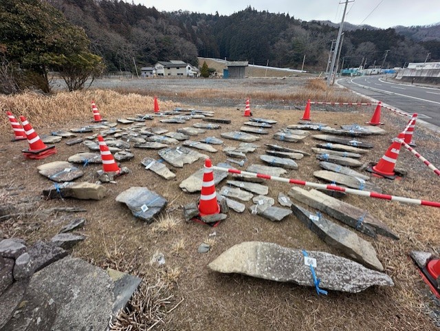 本堂解体工事 昨年の護持会総会で決定した本堂と客殿の解体工事が先月中旬からはじまりました。 客殿の解体が終わって本堂の解体です。 今朝いったら本堂もありませんでした。 入口にある板碑は市の調査後に本堂跡地へ移動します。 石巻市博物館の I 先生と教育委員会の K 君が調査のため寒いのに手作業で板碑を抜いてくれました。